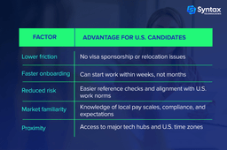 • For many firms, U.S. candidates are the faster, lower-risk option.