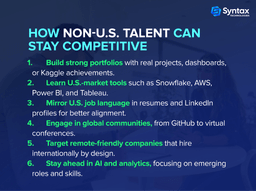 The 2025 hiring shift reflects a mix of talent shortages, visa complexities, rising salaries, and the move toward skills-based evaluation. These dynamics place U.S.-based candidates at an advantage, largely due to lower hiring friction and faster onboarding. However, global candidates who focus on building visible skills, aligning with U.S. market practices, and targeting remote-first employers can still carve out strong opportunities.